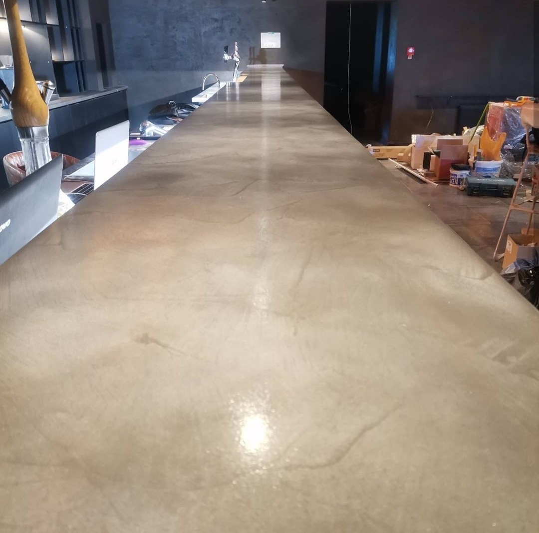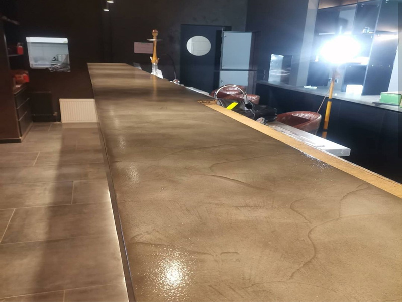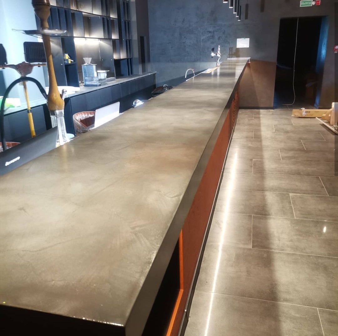 Барная столешница из микроцемента выполнена в Гомеле. Бар. Материалы использовались DeHust, фактура CemSolid. Срок выполнения 6 дней.