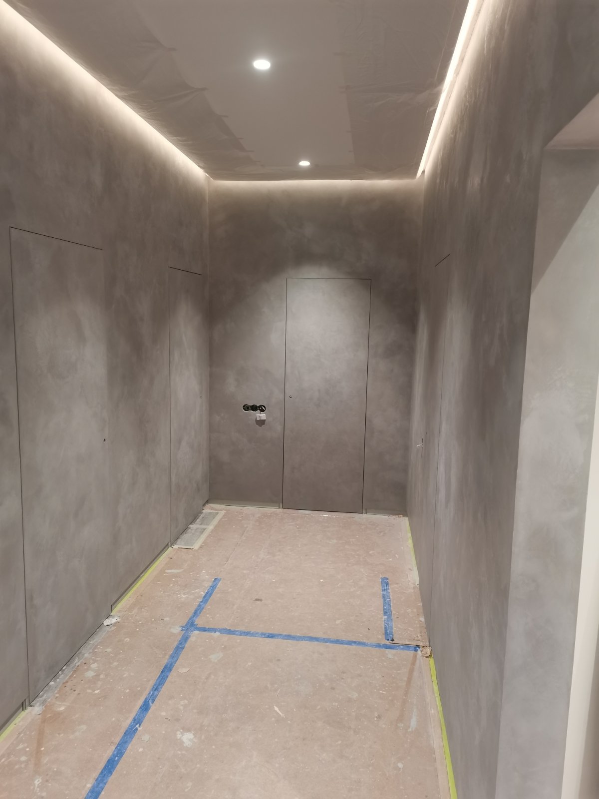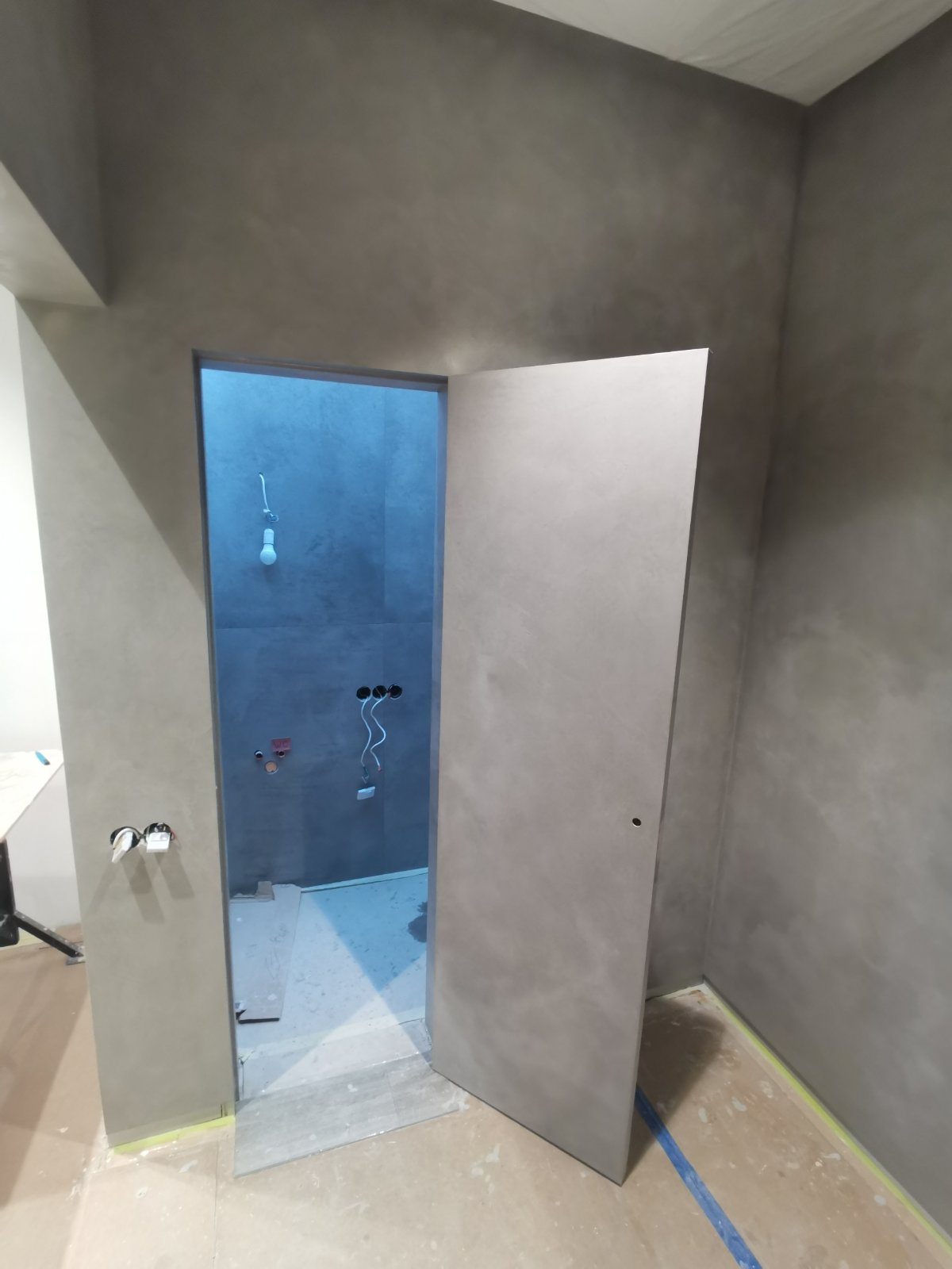 Стены и пол в квартире из микроцемента выполнена в Гомеле. Материалы использовались DeHust, фактура CemSolid. Срок выполнения 6 дней.